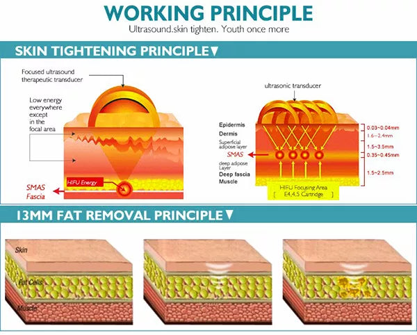 High Intensity Focused Ultrasound (HIFU) directly delivers heat energy to skin and subcutaneous tissue that can stimulate and renew the skin's collagen and thus consequently improving the texture and reducing sagging of the skin. It literally achieves the results of a facelift or a body lifts without any invasive surgery or injections, moreover, an added bonus of this procedure is that there is no downtime.
