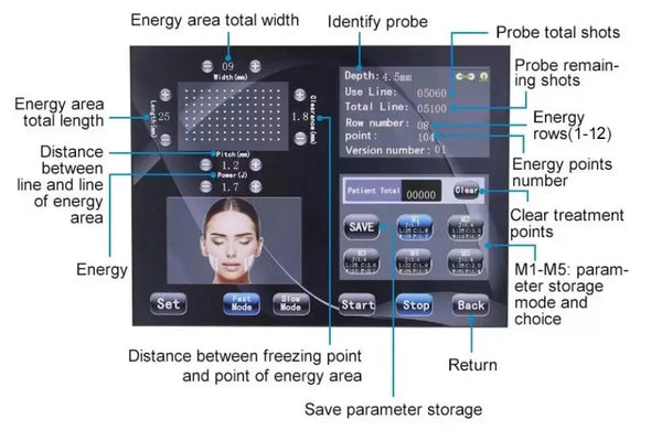 2. A maximum of 12 lines can be used in a single shot, and the maximum energy area is 10mm wide. the corresponding parameters can be adjusted according to the size of the skin area,which will maximumly reduce the hifu treatment time,make the energy point effects on the skin is more uniform, and the curative effect is better.