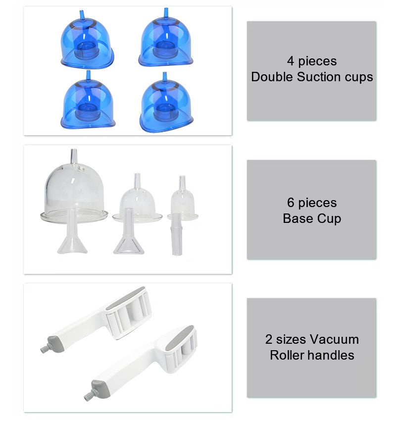 Accessories: 4pcs double suction cups; 6pcs base cups; 2 sizes Vacuum Roller Handles;