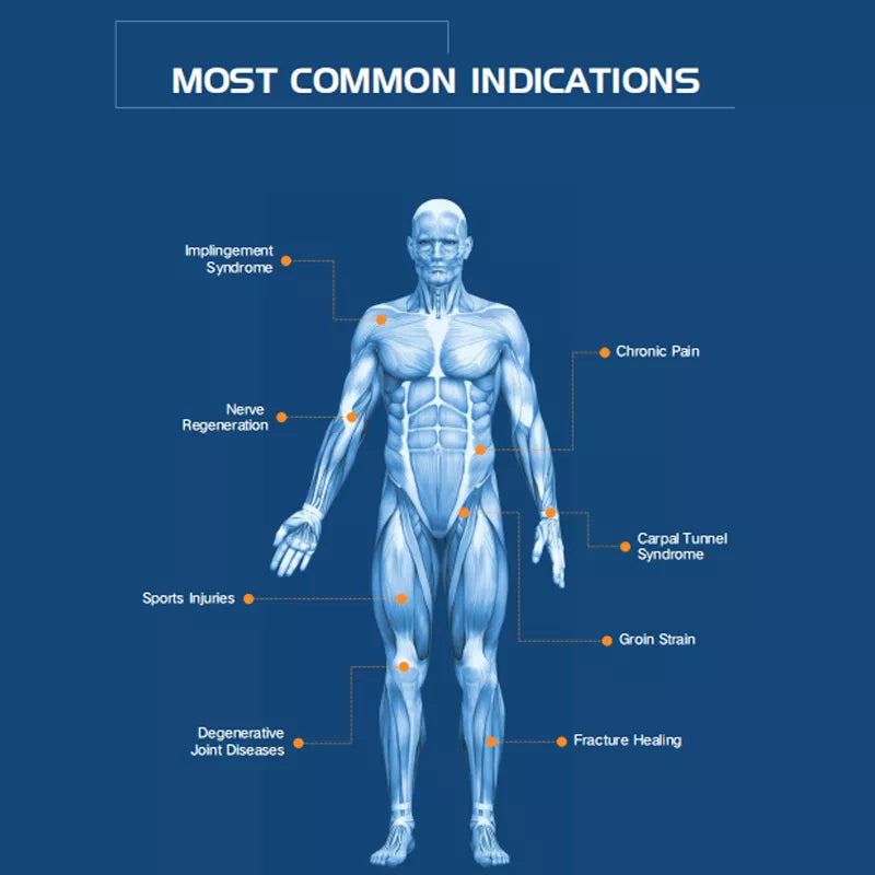 * ST mode: 1000-3000Hz for rehabilitation and regeneration of bones, tendons, and ligaments.