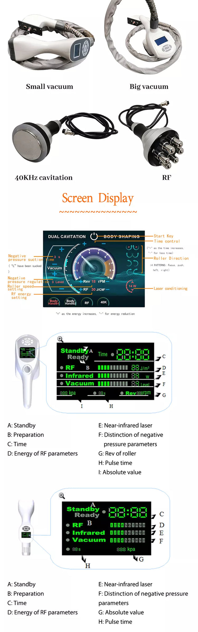 40K Strong sound waves explosion head effectively promote the organization fat metabolism, repel orange peel fat, firming skin,enhancing skin elasticity, etc. And the effect is long lasting. The 40 K sound waves can make a implosion of liquid as the expansion and compression of the wave make the inside of the liquid formed in many small space and what inside this kind of space are gas and steam. During the compression cycle, the 40K sound waves have positive pressure effect on the liquid molecules, while during the expansion cycle the 40K sound waves have positive pressure effect on the liquid molecules.