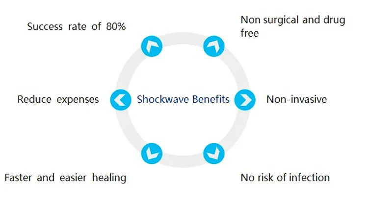 Physiotherapy : Shock wave is an acoustic wave which carries high energy to painful areas and soft tissues with subacute, subchronic and chronic conditions.This energy promotes healing, regenerating and reparative processes. It's a unique, non-invasive solution for pain associated with the musculoskeletal system.Three to four treatments needed at weekly intervals. A therapy session only takes approximately 10 minutes.