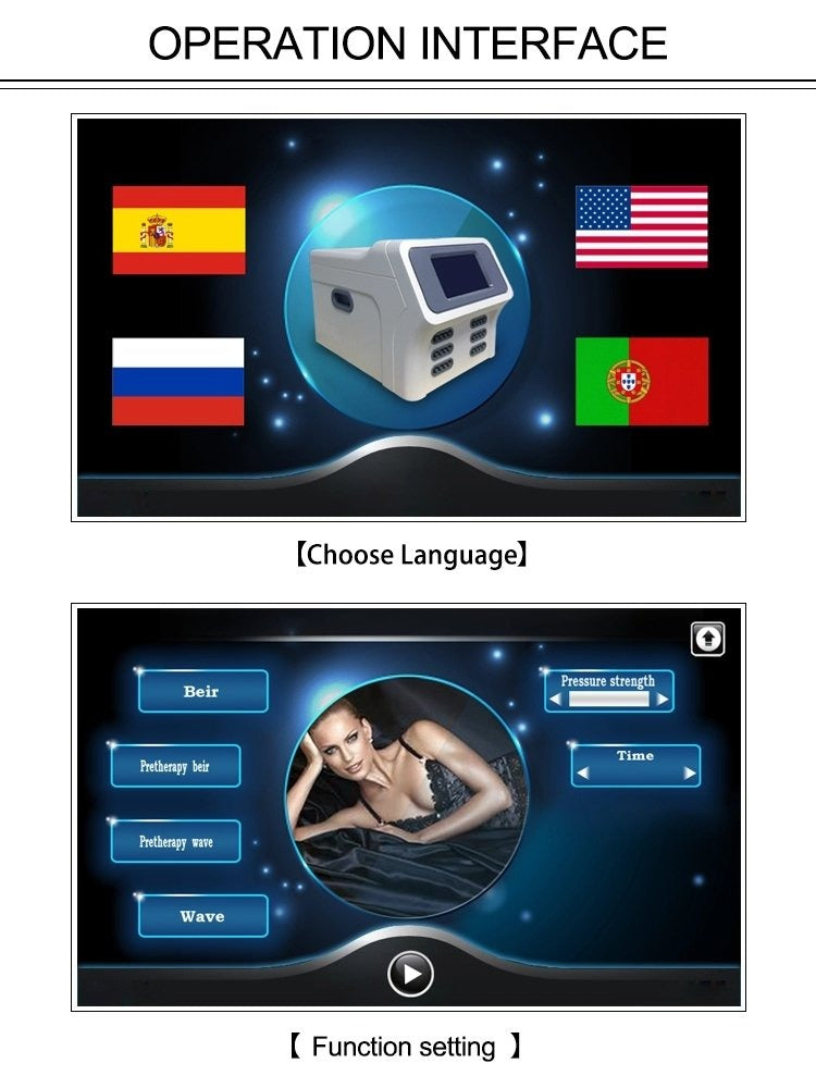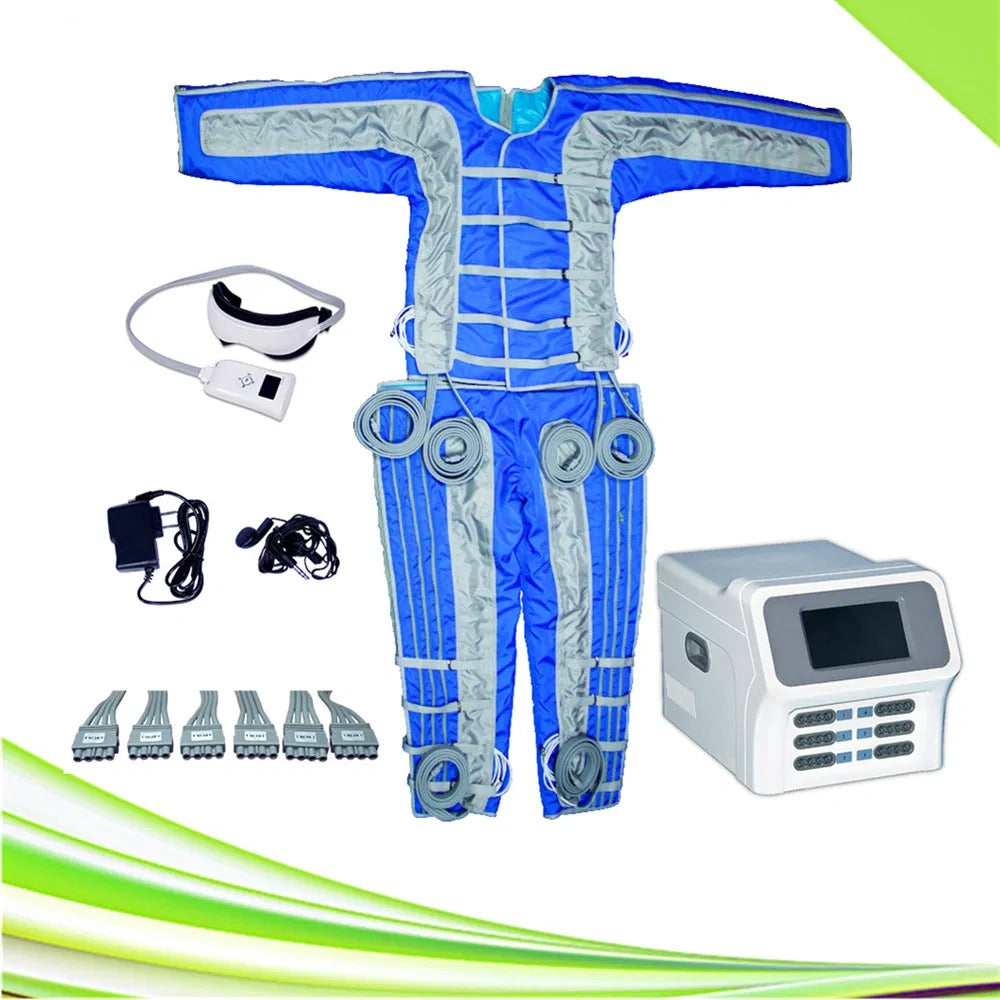 The pressotherapy, with a set of cloth-like accessory and 20 pieces of air bags (10 pairs, or 10 pieces on each side of body), which allows for pressure by cycles or all together for both the whole body and certain parts of the body, is a compression system designed to increase the venous and lymphatic flow and enhance extra-cellular fluid clearance.It can help to promote the body's natural toxin clearing functions. The revitalization and oxygenation of the tissue helps to slim and redefine the legs, stomach and arms while enhancing skin tone.