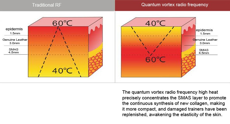 The variable frequency radio frequency function achieves precise heating of the superficial, middle and deep layers of the skin. At the same time, infrared light repairs damaged fibrous tissue and stimulates the regeneration of collagen cells. The two-pronged approach makes the skin firm and plump, improves wrinkle removal, and reduces chloasma and makes it radiant. The degree is improved, the overall contour is improved, and the skin is younger!