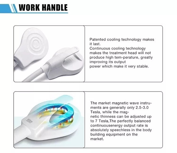 3.7 Tesla High Intensity——cover big skeletal muscles, and remodel its inner structure. 4.Patented cooling system——support long time operation
