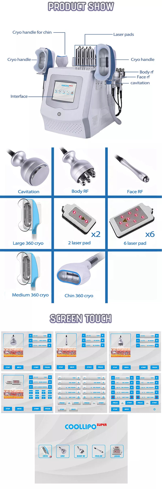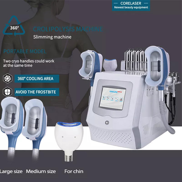 360 cryotherapy is a new, invasive way to reduce fat in target parts of body. It freeze triglyceride(a meterial of fat), which will freeing, coagulation in specific low temperature. 360 surround cooling technology is unlike the conventional two sided cooling method, The 360 applicator relies on "all-round cooling" instead of the traditional cryo cup "Cooling plates". High conductive cooling surface that works with built-in electroporation energy to offer a unique cooling delivery system which results in firmer skin and even better fat reduction. 360 handle designed with different interchangeable contours to adapt to any area of the body, the handpieces are adapted for areas of curved contours like the back, waist and sub-buttocks, broad areas such as the flanks, love handles and calves, and for fat folds small and large, from the abdomen and back to the arms, knees and under the chin.